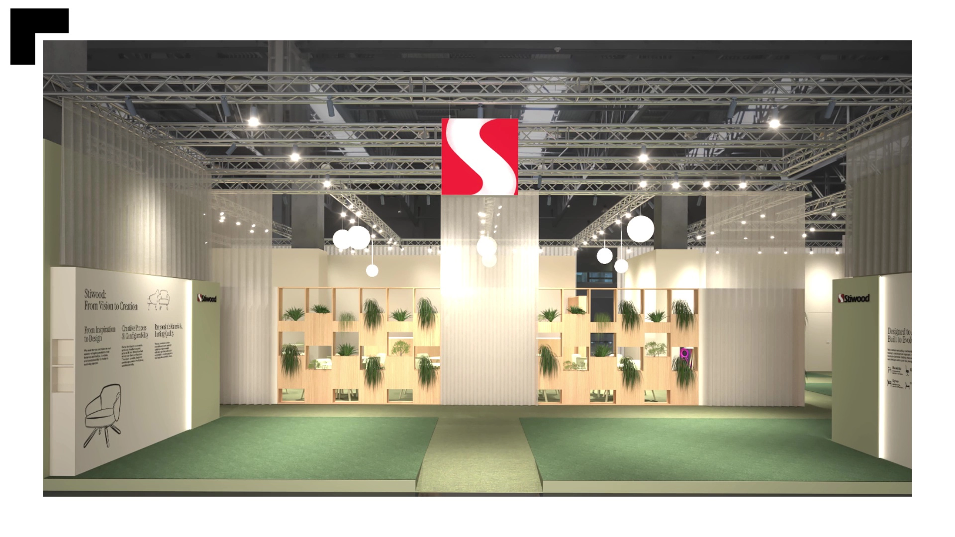 Le tre aree espositive laterali hanno rappresentato le diverse anime delle aziende, presentando le nuove collezioni prodotto per i settori office, home office, hotellerie e Ho.Re.Ca. Il layout è stato concepito come un grande spazio aperto e interconnesso, privo di barriere architettoniche e visive, per offrire ai visitatori una visione d’insieme chiara e fluida dell’intera proposta espositiva.