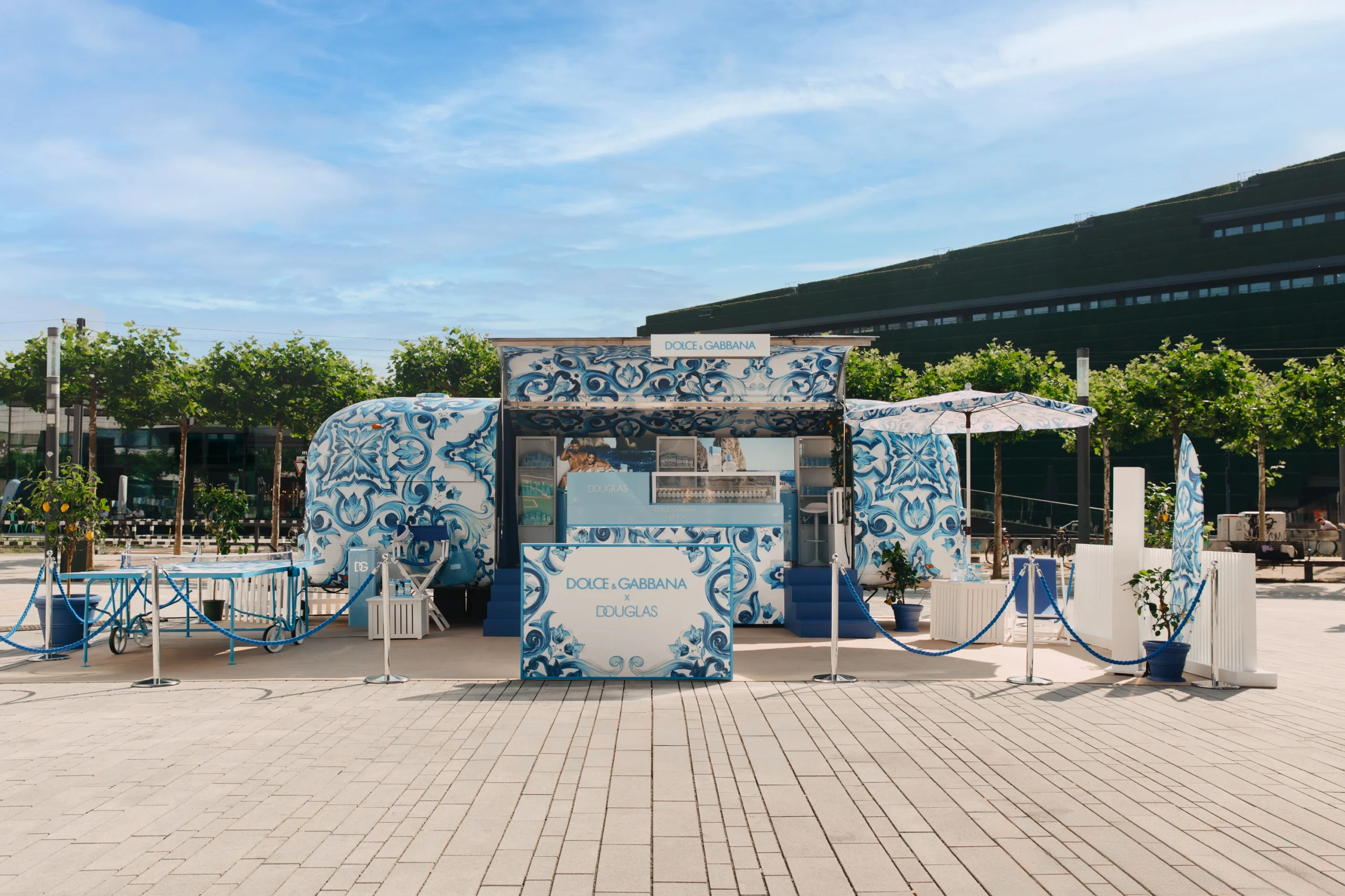 Il D&G Light Blue Summer Tour è il format immersivo pensato per un beauty break all’aria aperta, in 11 tappe europee. L’area relax, allestita con sdraio, ombrelloni e ping pong, ha ospitato anche la vendita dei prodotti.