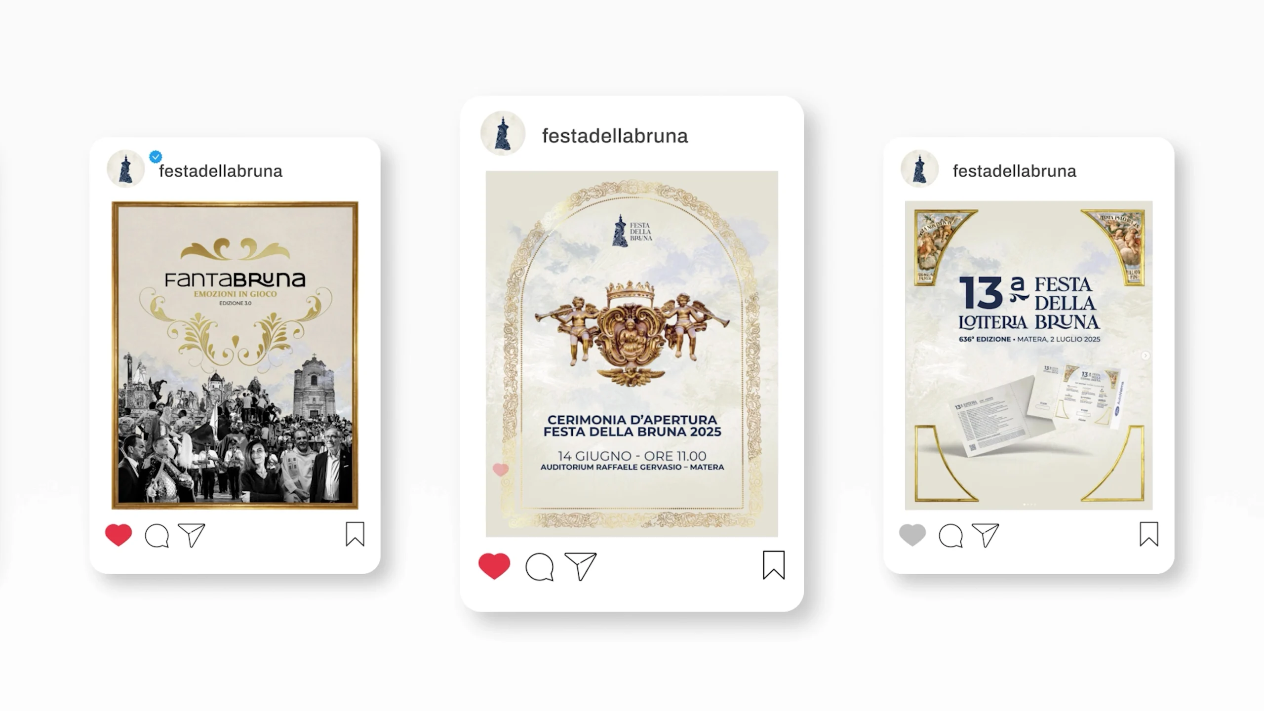 Declinazione: la campagna multicanale ha valorizzato simboli iconici Madonna della Bruna, rosone della Cattedrale, carro, luminarie in manifesti, biglietti, programma editoriale, merchandising t shirt, grafiche social e materiali per mostre. Il sito web dedicato, arricchito da countdown e contenuti storici, ha centralizzato le informazioni. Completano le attività shooting, videomaking e archivi multimediali. Sponsor, istituzioni e attività commerciali hanno sostenuto l’Associazione organizzatrice, rafforzando il legame comunitario.